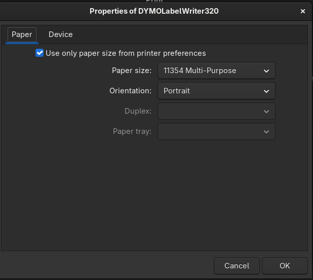 - Zmień nośnik w preferencjach drukarki na ten z tabelki